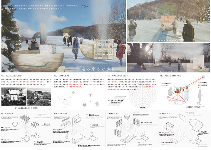 地球と人のスケールを跨ぐ、動く生活の提案です。言葉と絵で表現できるアンリアルな作品の魅力をリアルな物体が超えるための、純粋な想像力と並々ならぬしつこさの不足が私の敗因です。それを頭ではなく感覚として痛感した素晴らしい経験でした。自分の作品の魅力に責任を持ち、建築を続けていきたいと思います。